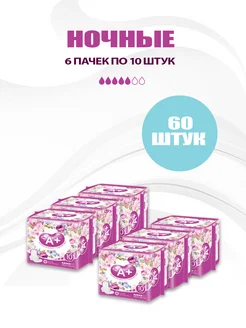Прокладки гигиенические ночные 6 упаковок по 10 штук