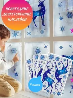 Наклейки новогодние на окна двухсторонние