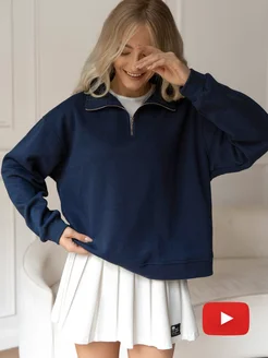 Свитшот оверсайз с молнией на воротнике, кофта полузамок
