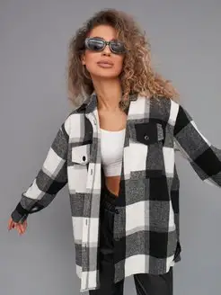 Рубашка оверсайз в клетку теплая с длинным рукавом