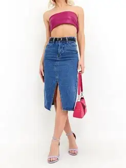 Юбка женская джинсовая длинная с разрезом миди летняя
