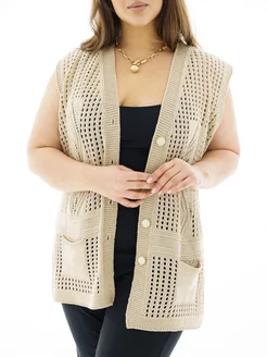 Жилет женский безрукавка вязаная осенняя удлиненная