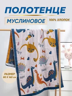 Полотенце плед муслиновое детское пляжное Динозавры