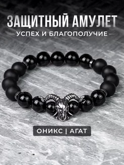 Браслет на руку из натуральных камней агат и оникс