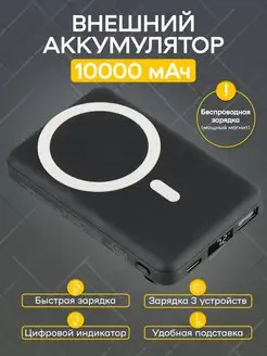 Повербанк 10000 для телефона с беспроводной зарядкой