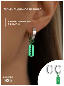 Серьги серебро 925 Зеленое лезвие