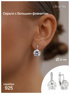 Серьги серебро 925 с большим фианитом диаметром 11 мм