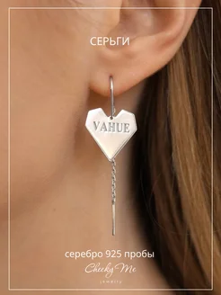 Серьги протяжки серебро 925 сердце маленькое "VAHUE"