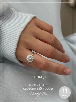 Кольцо серебро 925 с фианитом диаметр 11 мм