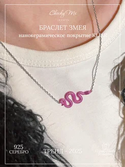 Колье серебро 925 розовая змея с фианитом
