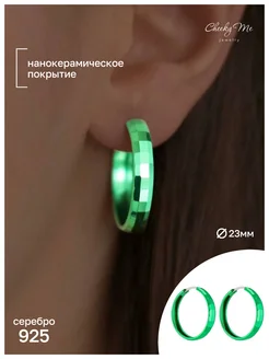 Серьги серебро 925 конго зеленые 23 мм
