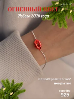 Браслет серебро 925 красный поцелуй