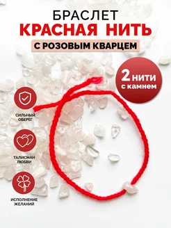 Браслет красная нить с камнем розовый кварц