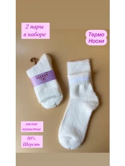 Носки теплые норковые белые женские 2 пар