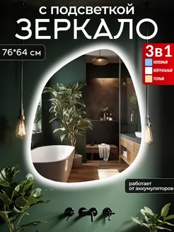 Зеркало настенное фигурное на батарейках с подсветкой 3 в 1