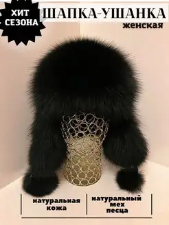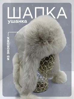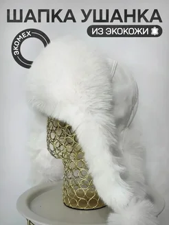 Шапка ушанка зимняя меховая из экокожи с помпоном