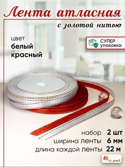 Лента атласная с люрексом набор 2 шт. по 22 м