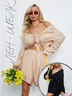 Костюм с двойными шортами и блузкой