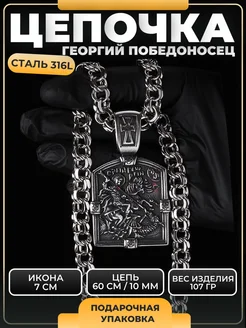 Цепь стальная бисмарк икона Георгий Победоносец освященный