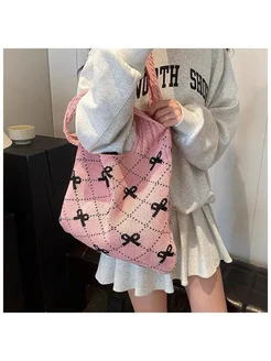 Вязаная большая сумка шоппер с бантиками на плечо y2k
