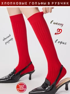Носки высокие хлопковые в рубчик нарядные праздничные у2к