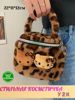 Косметичка женская пушистая леопардовая hello kitty y2k