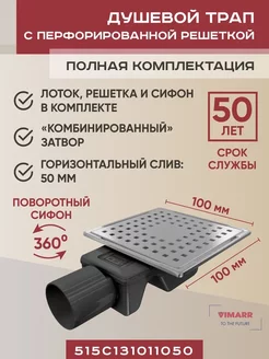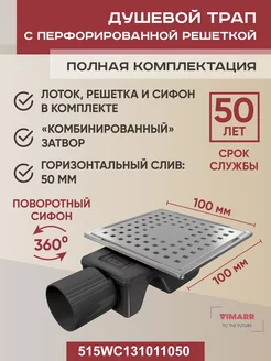 Трап квадратный душевой под плитку 100х100, вертикальный D50