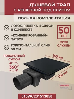 Трап для душа под плитку квадратный 150х150 мм