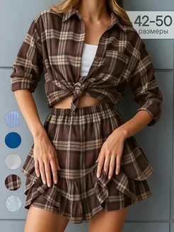 Костюм женский юбка с рубашкой в клетку