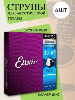 Струны Elixir Polyweb Bronze 80 20 10 47 6 штук