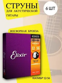 Струны Elixir Nanoweb Phosphor Bronze 12 56 6 штук