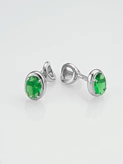 Серьги-пусеты серебряные 925 пробы с зелеными фианитами