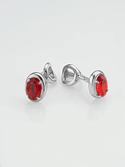Серьги-пусеты серебряные 925 пробы с красными фианитами