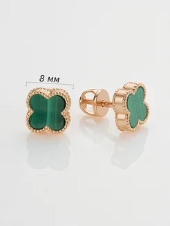Серьги-пусеты клевер серебряные 925 пробы с Малахитом