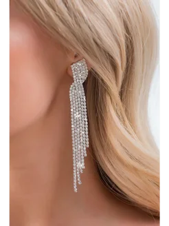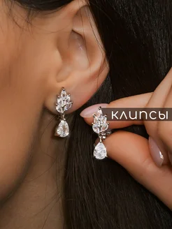 Сережки клипсы на уши без прокола под серебро с цирконами
