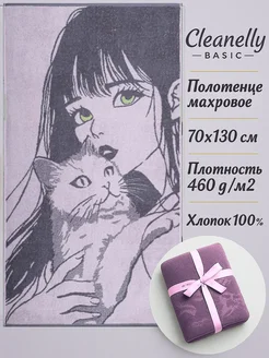 Полотенце банное детское 70×130, девушка и кот, 100% хлопок