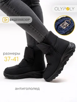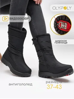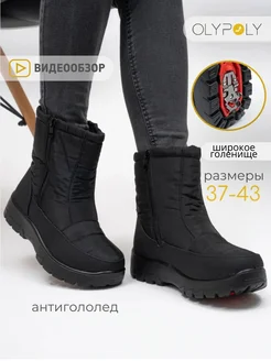 Дутики женские зимние высокие антискользящие на широкую ногу