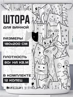 Штора для ванной комнаты 180х200 см тканевая на люверсах