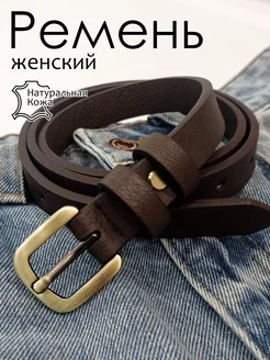 Ремень из натуральной кожи, тонкий, темно-коричневый