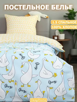 Постельное белье 1.5 спальное хлопок 100% Гусь обнимусь