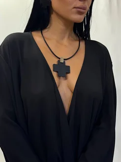 Колье на шею кожаное с кулоном крест