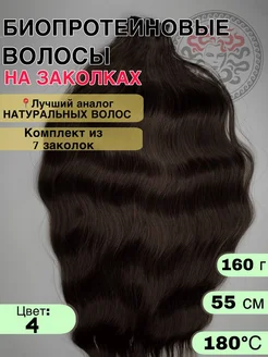 Волосы на заколках биопротеин 55см 7шт набор 170гр 4 волна