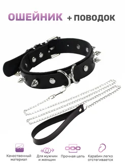 Ошейник БДСМ с шипами и цепью игрушки 18+