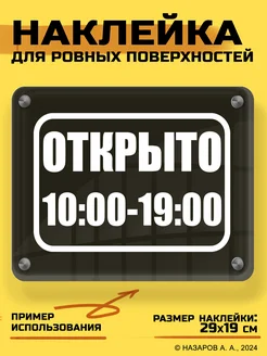 Наклейка декоративная Режим работы Открыто c 9 до 20