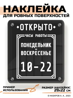 Наклейка декоративная Режим работы Открыто c 9 до 21