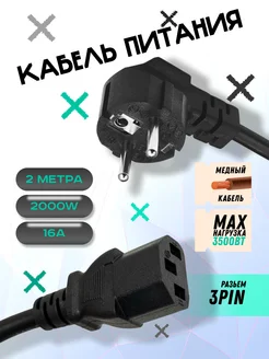 Сетевой кабель питания 2метра, евровилка, 3Pin