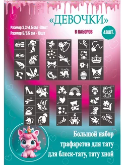 Набор трафаретов для тату девочки 6 листов 48 трафаретов
