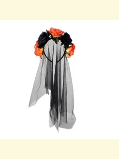 Фата ободок черная на Хеллоуин с цветами и фатой
