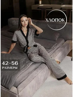 Пижама комплект хлопок брюки рубашка домашний костюм