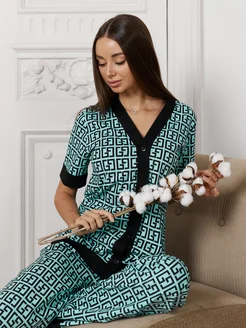 Пижама со штанами и рубашкой хлопковая домашняя